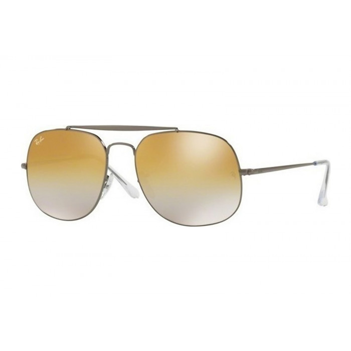 Το Ray-Ban RB3561 The General είναι ένα μεταλλικό γυαλί ηλίου σε ασημί σκούρο χρώμα, με ασημένιο-καφέ καθρέφτη φακό κρυστάλλινο που παρέχει πλήρη προστασία από τις ακτίνες του ηλίου. Ένα ιδιαίτερο γυαλί ηλίου σε τετράγωνο σχήμα με διπλή γέφυρα.