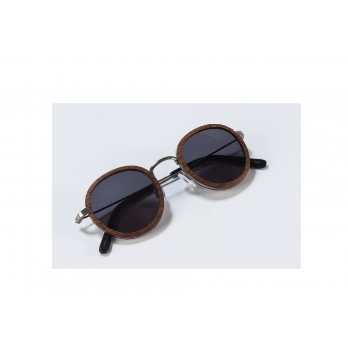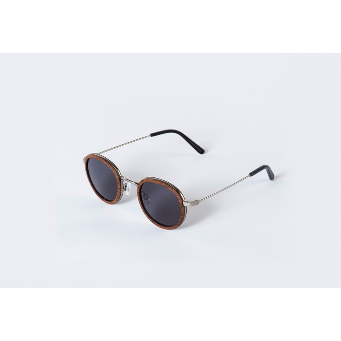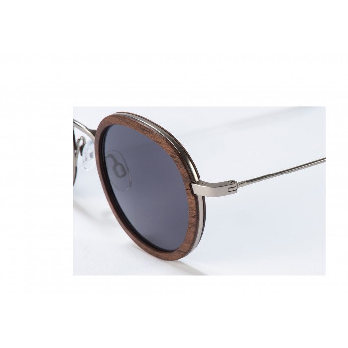 Χειροποίητα γυαλιά ηλίου Waiting For The Sun Alabama, κατασκευασμένα από β-τιτάνιο που τα κάνει ελαφρυά και ανθεκτικά σε χρώμα κονιάκ με όψη ξύλου και βραχίονες σε σκούρο ασημί χρώμα με γκρι φακούς που παρέχουν πλήρη προστασία από τις ακτίνες του ηλίου. Μια κομψή επιλογή με μινιμαλιστικό σχεδιασμό σε στρογγυλό σχήμα. Αυτά τα γυαλιά είναι κατάλληλα για εγκατάσταση φακών με συνταγή.