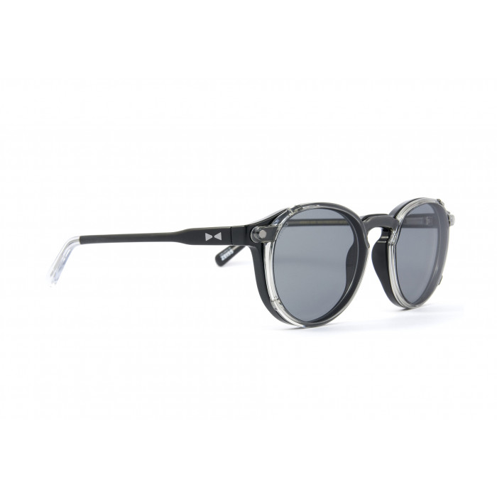 Γυαλιά οράσεως Snob Milano Dogui Vee, με κοκκάλινο σκελετό σε μαύρο χρώμα και μαγνητικό clip-on με γκρι φακούς Zeiss που στερεώνεται πανεύκολα. Μια μοντέρνα επιλογή σε στρογγυλό σχήμα που παρέχει πλήρη προστασία από τις ακτίνες του ηλίου. Αυτά τα γυαλιά είναι κατάλληλα για τοποθέτηση φακών με συνταγή.  Αποτελούν διαχρονική επιλογή χαρίζοντας ταυτόχρονα μοναδικό στυλ.